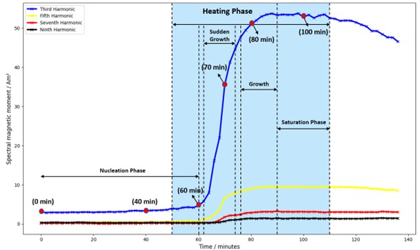 - Misst Veränderungen der magnetischen Bewegung und liefert eine detaillierte Analyse der MNPs, die sich in der Keimbildung und im Wachstum befinden.